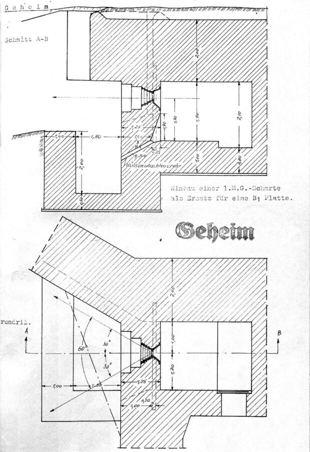 [05] – Pak- und M.G. Kasematte mit Sehrohr mit Flankierungsanlage (Kazamata dla działka p.panc oraz ckm z peryskopem i pomieszczenie obrony zapola).