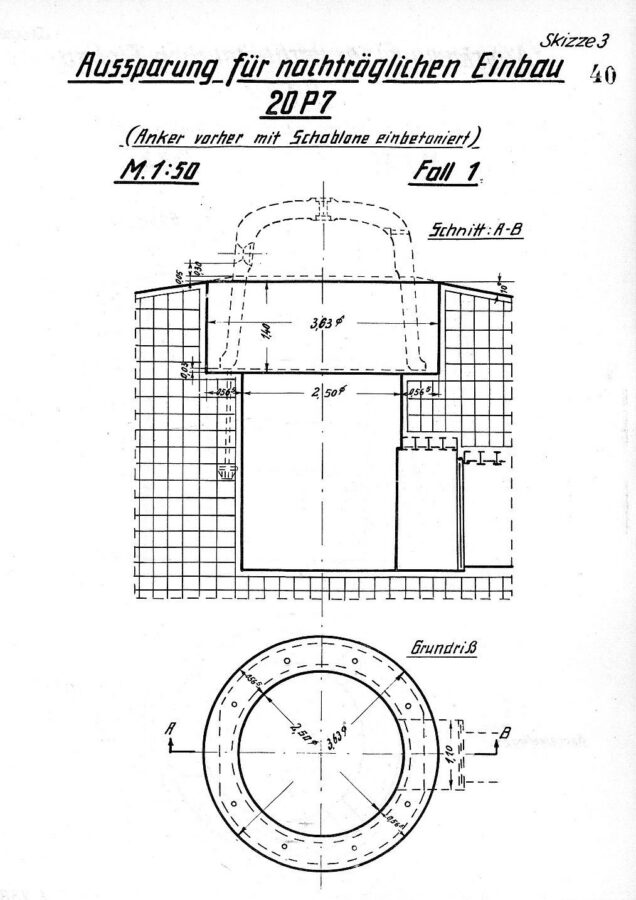 [02] – Płyta 485P2 osłaniająca działko 3,7cm Pak 36 jedyny niemiecki pancerz pionowy jakiego montaż przewidziano na obiektach Umocnień Granicznych Śląska.