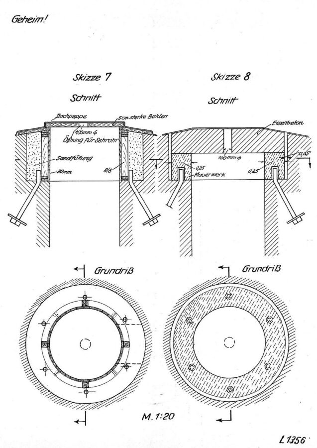 W przypadku braku dostawy przewidzianych do osadzenia kopuł, wspomniana wcześniej instrukcja przewidywała zakrycie wykonanych otworów technologicznych drewnianymi pokrywami, dodatkowo pokrytych papą w celu ochrony przed warunkami atmosferycznymi. W przypadku możliwości bezpośredniego zagrożenia ze strony wroga instrukcja nakazywała wykonanie betonowego korka zamykającego pusty szyb kopuły. Oba przedstawione w instrukcji rozwiązania przewidywały pozostawienie otworu na peryskop. Prawdopodobnie planowano wykorzystanie tego samego typu peryskopu. W betonowych korkach, zakrywających puste szyby kopuł, pozostawiono centralnie umieszczone otwory lub osadzono stalową rurę o średnicy 100 mm. Odpowiada ona wielkością rurze osłonowej przewidzianej dla peryskopu vz.37 w czechosłowackiej fortyfikacji. W części obiektów na Górnym Śląsku zastosowano drugie rozwiązanie. Spowodowane o było najprawdopodobniej tym, że na cześć obiektów miały zostać dostarczone kopuły lub nie zdążono wykonać wszystkich betonowych korków przed wybuchem wojny.